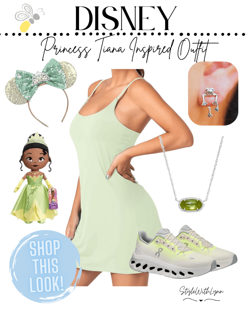 If you’re looking for a Tiana-inspired outfit that combines athletic comfort with royal elegance, this look is the perfect blend of practicality and Disney magic! Whether you’re headed to the parks or simply adding a touch of princess charm to your everyday wardrobe, this ensemble captures Tiana’s style while keeping you ready for adventure.